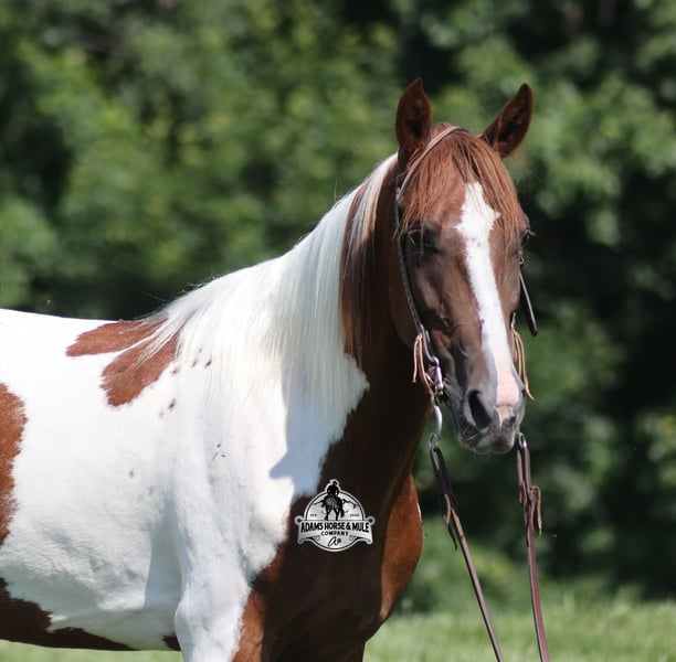 Deacon is a 15.1h, 5 year old, Tennessee Walking Horse gelding that is a beautiful chestnut tobiano color! He is Mr. Personality, as friendly as they come, loves attention and is very calm natured! Deacon has been ridden by every member of our family all the way down to our 7 year old and he is sure to help build your confidence levels! He has been ridden down the highways and he is traffic safe. Deacon is great on trails and he will cross creeks, ditches, logs and navigate rough rocky areas. He has a natural gait that is super smooth, he will lope, has a good stop, he neckreins some and backs. He has been exposed to all kinds of wildlife such as deer or turkey or other animals like cows or dogs and will go anywhere that he is asked too. He has been ridden many miles in the mountains of Eastern Kentucky and encountered every obstacle possible on the trail. He has been on several week long camping trips. He hauls well and picketline ties also. He will go up or down even the steepest slopes, across deep creeks, over downed trees, and over all types of rough terrain while still being sure footed. Dan has no bad habits! He truly is the horse of lifetime and we want anyone that is interested in getting to know Dan to just give us a call and everyone is welcome to come see him in person as well! Feel free to call Eric 606-308-2461 with any questions.