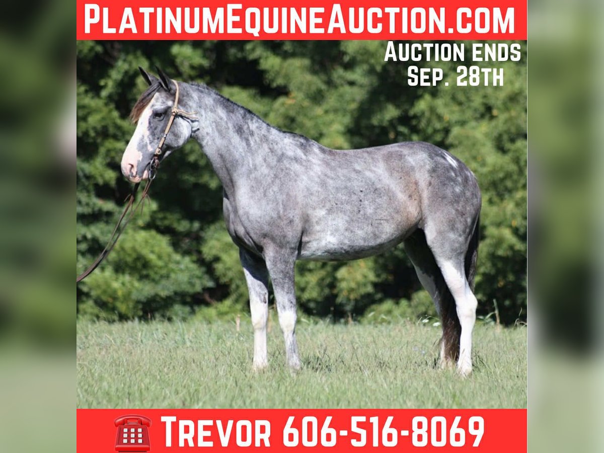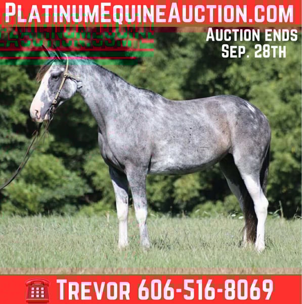 ONLINE AUCTION Place your bids at www.PlatinumEquineAuction.com Starting Bid $3500 Auction ends September 28th, 2025 Need a new saddle? Check out White Rock Saddles on our website or Facebook May Belle is a horse of a different color!! She is a beautiful 12-year-old Tennessee Walking Horse mare standing at 15 hands high. She has been on numerous camping trips, including to Big South Fork in Tennessee, where she has mastered rough, rocky trails and handles herself with ease. From steep slopes to deep creeks, downed trees, and rugged terrain, May remains sure-footed and reliable. She’s also been ridden in traffic and is entirely safe around cars, semis, logs, and dump trucks. If you’re looking for a smooth ride, May’s true 4-beat gait is a dream for anyone to enjoy without straining their back. Not only does she have the looks, but she’s also got the moves! May does well in a mixed herd and has a fantastic attitude, no matter what you ask of her. For any questions, feel free to call Trevor Patrick 606-516-8069. Located in Parker’s Lake, KY. ONLINE AUCTION Place your bids at www.PlatinumEquineAuction.com Starting Bid $3500 Auction ends September 28th, 2025 Need a new saddle? Check out White Rock Saddles on our website or Facebook