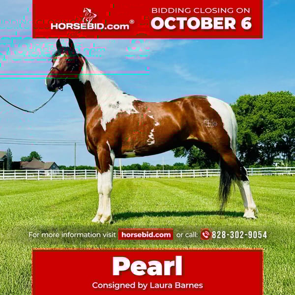 🍂 𝓐𝓾𝓽𝓾𝓶𝓷 𝑨𝑳𝑳 𝑺𝑻𝑨𝑹 𝑳𝑰𝑵𝑬𝑼𝑷 🍂 Happening now thru MONDAY | OCTOBER 6th - Available EXCLUSIVELY on HorseBid's website! For more details and to register visit: www.Horsebid.com CONSIGNOR CONTACT: Laura Barnes 828-302-9054 LOCATION: Lewisburg, TN BREED: Tennessee Walking Horse REGISTERED: Yes REGISTERED NAME: Pearl COLOR: Black Tobiano HEIGHT: 15.1 AGE: 8 GENDER: Mare Meet Pearl! Pearl is a registered American Gaited Horse mare standing at 15.1 hands high. At the ideal age of 8, she is experienced, steady, and ready for her next trail partner. This trail deluxe mare has explored miles of beautiful terrain—from Tennessee to Kentucky, including Land Between the Lakes and Shawnee National Forest. She has been enjoyed by an older couple on both camping trips and day rides, shining with her smooth, comfortable gait every step of the way. Pearl is confident on all types of terrain: water, mud, gravel, pavement, and open fields. She travels well with other horses and is accustomed to dogs, ATVs, cows, and farm equipment. Her gentle, kind demeanor and excellent ground manners make her a pleasure to handle. Pearl stands politely for mounting, making every ride safe and stress-free. Whether you’re planning a group ride or a solo adventure, Pearl is your perfect trail companion. Don’t miss the opportunity to bring this fun-loving, dependable mare home today!