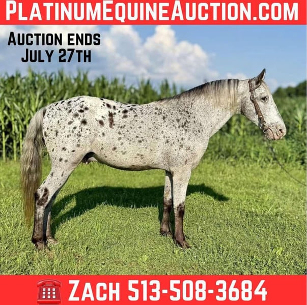 NLINE AUCTION Place your bids at www.PlatinumEquineAuction.com Starting Bid $3500 Auction ends July 27th 2025 Need a new saddle? Check out White Rock Saddles on our website or Facebook Cochise is a handsome 11 year old gaited walkaloosa gelding that’s stands 14.1 hands tall ( technically 14.1 and a 1/2 inch). Cochise has been a lesson horse the last few years helping people of all ages learn to ride gaited trail horses and the lately we have been lucky enough to get to enjoy him ourself, my daughter ( has taken Cochise on several riding trips and loves every minute, as you’ll see in the video Cochise loves people and I find him very trustworthy on the ground, you’ll know what I mean when you see my kids climbing all over him. Aside from that he is a stellar trail mount, he isn’t spooky in anyway and will ride anywhere in the group as well as out alone, he has a very smooth gait and a nice rocking chair canter. Everyone knows that a naturally gaited Appaloosa is like finding hens teeth but I feel to find one with such a good personality makes him even more rare than he already is. He loads in the trailer easily and stands in the crossties for grooming. In fact, he loves to stand in the crossties with the fan blowing on him while the kids pamper him. Cochise may not be the biggest horse out on the trail, but he can definitely keep up with him no issue. Like I said above, I feel like this horse is truly a rare find, and I am proud to be able to represent him.. located in Moscow, OH. Call Zach with Brandenburg Stables 513-508-3684 for more information, to set up a time to come see him or to make a Buy I Now Offer. ONLINE AUCTION Place your bids at www.PlatinumEquineAuction.com Starting Bid $3500 Auction ends July 27th 2025 Need a new saddle? Check out White Rock Saddles on our website or Facebook