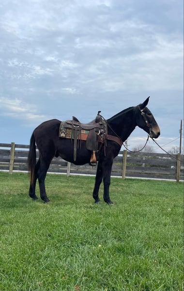 ONLINE AUCTION Place your bids at www.PlatinumEquineAuction.com Starting Bid $3500 Auction ends February 9th, 2025 Need a new saddle? Check out White Rock Saddles on our website or Facebook! Earnie is a one of a kind gaited mule. He is undoubtedly the brokest, handiest, smoothest mule I have ever had in my barn. This mule is absolutely incredible, just watch the video and let him speak for himself. In the video you’ll see Earnie riding at a walk on a very loose relaxed rein, you’ll see him gait and lope, this mule’s gait is awesome, and his canter will make your mouth water, is collected, correct and uncomplicated to ride. He is traffic safe, used to trail dogs and will ride in groups of any size or out alone with ease. This mule is easy to handle, no problem for the farrier and just flat out easy to be around. He will neck rein, ride bridleless and back up. Staying true to a mule’s reputation, he is sure footed and very confident on the trail. Earnie is 15 years old, stands 14.3 hands and easy to brag on! Located in Moscow, OH. Contact Brandenburg Stables Zach 513-508-3684 with any questions. ONLINE AUCTION Place your bids at www.PlatinumEquineAuction.com Starting Bid $3500 Auction ends February 9th, 2025 Need a new saddle? Check out White Rock Saddles on our website or Facebook!