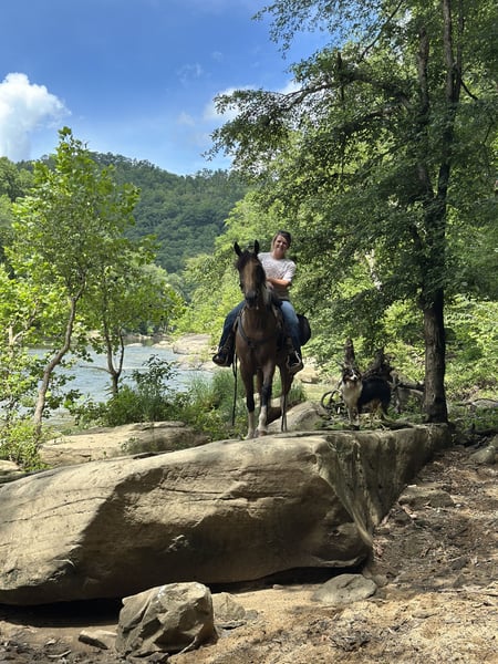 "AVAILABLE ON ONLINE HORSE AUCTION AT www DOT MagicHorseAuction DOT com BIDDING OPEN NOW thru TUESDAY | October 14TH! - BUY IT NOW AVAILABLE! *Final price will be determined on auction site* CONSIGNOR CONTACT INFO: Jakob Causey 859-544-4114 LOCATION: Paint Lick, KY Shaking Bucks or Shakes as we call him is a drop dead gorgeous 15.3hh 6 year old registered TWH gelding. This big boy has been all over America trail riding. When I say all over I mean All Over. From Hawking Hills to Shawnee National Forest, Multiple places down at the Big South Fork, to numerous places out West. For his age he has seen things most old horses will never see. Shakes has been with us here for about 6 months. Everyone has fell in love with him. He’s an 1100 pound dog lol. Follows you around and is 1000000% in your pocket. But you got to be careful he may still your hat or drink from you at times. He has a bigger than life personality. Shakes handles and rides like an old horse. Super good gaited, canters, reins around, responds off your legs and seat, and will back the length of a barn. Shakes rides out with or without company. Doesn’t need a babysitter to follow along by. But at the same time he is perfectly content with just following along. You will NOT and I mean will NOT find a better trail horse. He will ease up and down the roughest stuff you will ever come across. It will never be to hard for him. You can fill confident in laying your reins down and letting him take care of you. If I’m going to be descending down a rocky goat path off a mountain he is the horse I want to be on. I could go on and on about Shakes but to save time watch his video, give me a call and set up a time to come out and try him for yourself! You will not be disappointed.