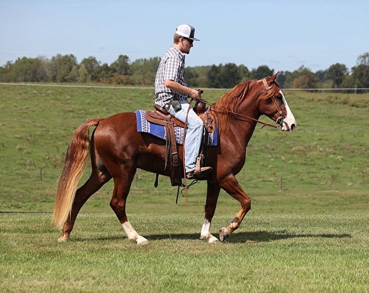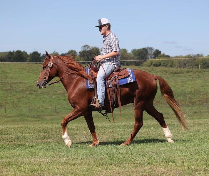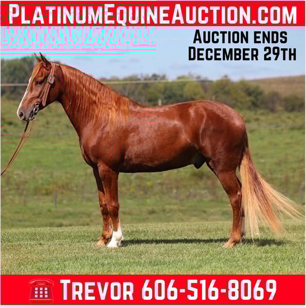 ONLINE AUCTION Place your bids at www.PlatinumEquineAuction.com Starting Bid $3500 Auction ends December 29th, 2024 Need a new saddle? Check out White Rock Saddles on our website or Facebook! Everyone check out Huck. Huck is a handsome 5-year-old chestnut Tennessee Walking Horse gelding standing 14.3 hands high, with plenty of chrome to go around. Huck has spent most of his life in the woods trail riding and has more miles than most ten-year-old horses. He takes his time down steep hills and easily navigates through rough terrain. He crosses the deep creeks with no problem. Huck has an outstanding four-beat gait that anyone is sure to love. He has a smooth run-walking gait and can kick it up a notch if asked, and he is as smooth as butter. He has also ridden up and down busy highways and is traffic-safe. We have had Huck on several camping trips where he has been tied overnight on picket lines. He loads, hauls, bathes, tacks up, and stands for the farrier like a gentleman. If you’re searching for your next lifelong trail partner, don’t hesitate to call Trevor Patrick 606-516-8069. Located in Parkers Lake, KY. ONLINE AUCTION Place your bids at www.PlatinumEquineAuction.com Starting Bid $3500 Auction ends December 29th, 2024 Need a new saddle? Check out White Rock Saddles on our website or Facebook!