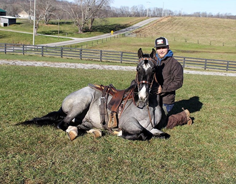 ONLINE AUCTION Place your bids at www.PlatinumEquineAuction.com Starting Bid $3500 Auction ends August 11th, 2024 Need a new saddle? Check out White Rock Saddles on our website or Facebook! I see Smoke but don’t worry “you’re not on fire Ricky Bobby”… SFF Pusher’s Blue Smoke (Blue) is standing around 15.1-15.2h, 2017 model registered TWH and is a True Blue Roan Gelding!!! He is a registered Tennessee Walking Horse and has a good pedigree. I bought Blue back in the spring and have trail rode him all summer, fall and winter. Blue has been trail ridden and camping in Tennessee, Ohio and throughout Kentucky. Blue is easy to catch, clip, bath, tack-up, load, and handle. Blue is a very well broke horse for his age, he has never tried to buck or bolt and he makes few mistakes. Blue has a very smooth and natural 4-beat gait all the way up to 12mph with a nice lope. He moves out easily and will also walk quietly on a loose rein. He has been ridden around farm equipment, ATV’s, over large noisy tarps and has also had guns shot off of his back. No matter where he goes or what he does, Blue is not spooky acting. On the trails he is always great! Blue has been exposed to all kinds of wildlife such as deer or turkey or other animals like cows or dogs and will go anywhere that he is asked too. He has been rode many miles in the mountains of Eastern Kentucky and Tennessee and encountered every obstacle possible on the trail. He will go up or down even the steepest slopes, across deep creeks, over downed trees, and over all types of rough terrain while still being sure footed. He has been rode in traffic and is safe around cars and trucks. He has a great attitude and an easy going personality. He is a horse that you can take home and finish him any way that you want him to be! You can Smoke all you want too here without any risks!!! I bought Blue 4 years ago and we have transitioned to quarter horses, call Scott Aurich 619-987-9797 for more info. Located in Bonita, CA. ONLINE AUCTION Place your bids at www.PlatinumEquineAuction.com Starting Bid $3500 Auction ends August 11th, 2024 Need a new saddle? Check out White Rock Saddles on our website or Facebook!