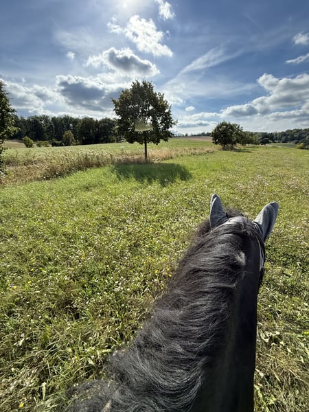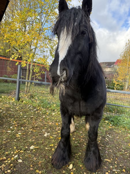 As seen in the photos, this is a stunning ten-year-old mare. She has been ridden for leisure, but she is still far from being perfectly trained… however, she enjoys every ride and is very trainable. In her current herd of two, she is the herd boss. She is regularly vaccinated and has recently had her teeth checked and treated. We are looking for a paddock boarder. She has been kept this way so far. Her skin is somewhat sensitive to insect bites, but with a fly sheet and cream, it is well under control. She is not offered as a children's pony.
