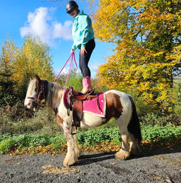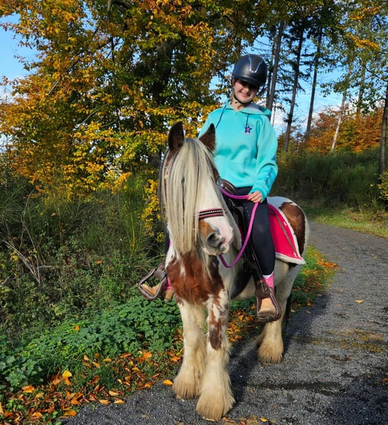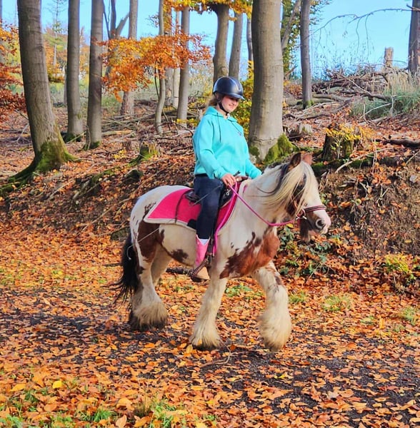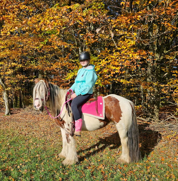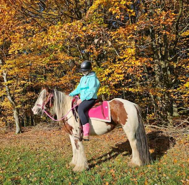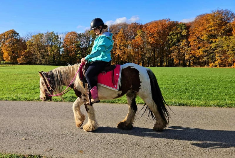 Tinker Mare in Beautiful Color Mare for leisure riding and trail riding* BABY BELL *Age*: 9 years, ridden *Height*: approximately 14.1 hh (1.44 m) *Equipment*: E-pass, microchip, and health certificate available *Price*: €4,900 A lovely mare that is ideally suited for trail and outdoor riding. She is a versatile leisure horse, well-suited for both English and Western riding disciplines. She has a calm, balanced temperament and feels comfortable in a herd but is also well-behaved in a stable. ### *What makes her special:* - Accustomed to herd and pasture turnout, stable confinement is no problem - Perfect for leisure and trail riders - Very even-tempered and easy to handle *Interested?* Please call us at *0171-4001968* (available daily from 8 a.m. to 8 p.m.). *No emails or WhatsApp messages, please—only calls!* *Additional information:* - Accessories and transport can be organized at favorable rates - Our farm shop offers a small selection of used Western saddles - *Installment payments are not available.* *Customer service:* - Each buyer receives a *three-month exchange guarantee.* - A trial ride at our facility is possible so you can get to know your dream horse. For €35, you can ride, be led, go for a walk, or more. Upon request, you can also test a second horse for €25. This amount will be deducted from the purchase price if you buy a horse on the same day. *Special features:* - Immediate pickup with a horse trailer grants you a *discount of €100.* - We complete the sale with a transparent trial ride to ensure it’s the right horse for you. *Legal notice:* - We are the sole and unrestricted owners of the images; image rights are held by us. *Reproduction of images by third parties is prohibited.* - Please note that this is a living animal. Our descriptions are based on the impressions of the caretaker and do not constitute guaranteed properties. - Listings are removed immediately once the horse is sold. *Interested?* Please call us at *0171-4001968* (available daily from 8 a.m. to 8 p.m.). *No emails or WhatsApp messages, please—only calls!*