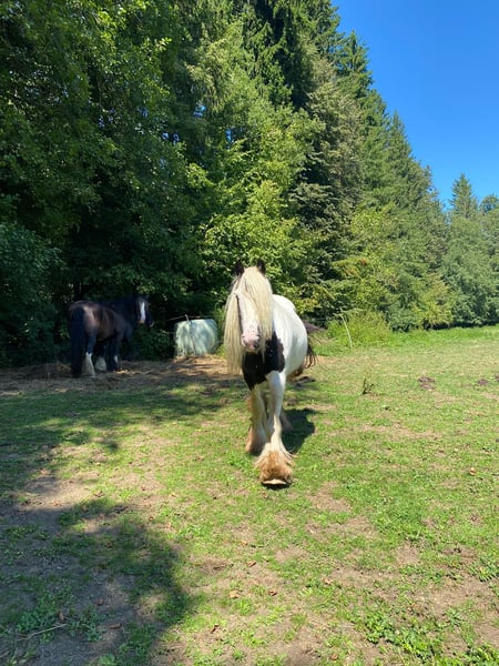 Wunderschöne und brave Tinkerzuchtstute, hat immer schöne Scheckfohlen und sehr brav im Umgang jedoch nur angeritten sucht neues Zuhause. Mit Abstammung und aus Irland. Möglicherweise trächtig von meinem schwarzen Hengst.