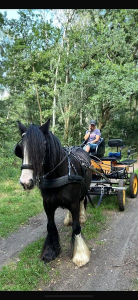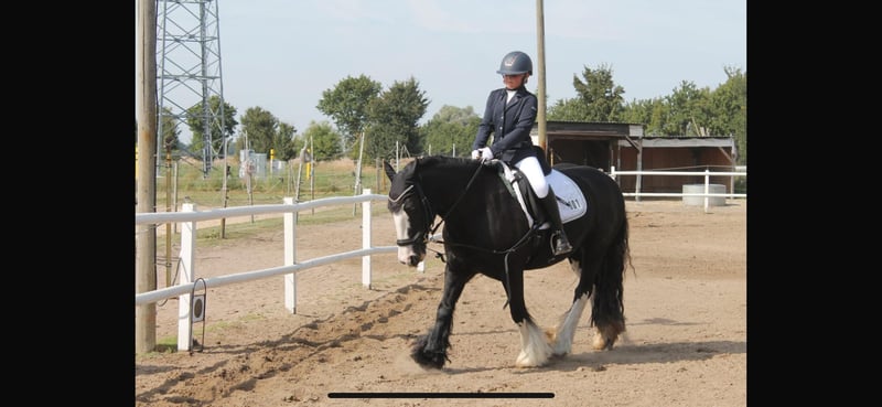 Our Tinker mare Mieze (14 years old) is looking for a new home. She is a super sweet little Tinker mare standing at 1.45m. Due to her build, she can also carry small, lighter adults. The pony is an absolute all-rounder, whether under saddle, in the field, in front of the cart, or at competitions, she performs excellently everywhere. She is currently being ridden by a 10-year-old girl who also goes out on her own into the countryside. She is fearless and does not rely on other horses, which also makes her a dependable horse in front of the cart. She has successfully competed in WBO competitions. Mieze is absolutely low in rank and avoids any stress directly. She loads easily, stands very still on the trailer, is gentle with the farrier and the veterinarian. Simply a super sweet, nice, honest pony without any bad habits. No kicking, biting, bucking, or anything else. For less experienced riders, she should also be ridden with corrections, as she is still a pony after all. This is not an urgent sale; she can easily stay with us longer and will only be placed in a truly suitable home. Regularly vaccinated (competition compliant) and dewormed. No mud fever or eczema, but she requires steamed hay. €4500 Please feel free to contact us with any further questions.