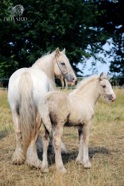 *Pretty palomino irish cob filly *A real heavy colt with abundance of feather *Built like a tank. *PSSM1 NEGATIVE/ COLOUR TESTED *BREEDING RECORDED, registered ICS NL the last two photos show the parents Transport anywhere can be arranged https://www.facebook.com/ZaliaStudGypsyCob WhatsApp: +48692773434 www.zaliastud.com