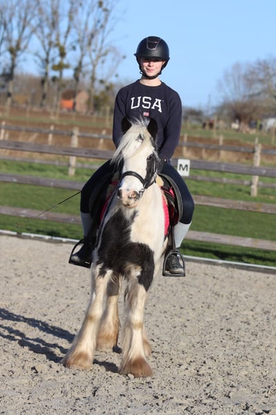 Vera est un poney pour enfants extrêmement gentil, doté d’un caractère exceptionnel. C’est une jument de 4 ans mesurant 1,30 m, idéale pour les cavaliers débutants ou un peu plus craintifs. Elle reste calmement immobile pour monter, brosser et seller. En carrière, elle connaît bien les trois allures et accepte volontiers un petit saut. De plus, Vera aime aussi se promener et s’entend très bien avec d’autres poneys. Un poney honnête et facile, dont les enfants profiteront énormément ! 📞 Plus d’infos ? 0032 475 682 243 🎥 Pour des vidéos : demandez notre site internet