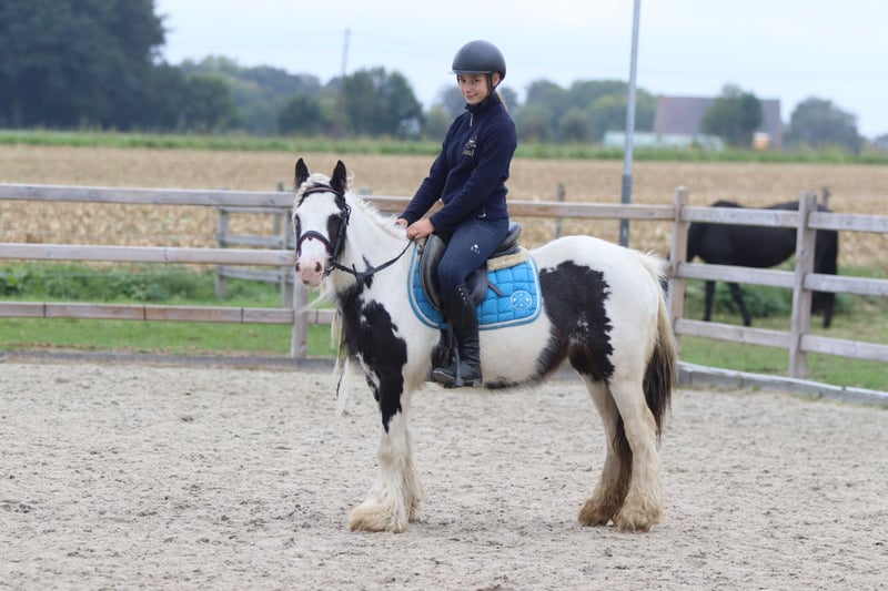🌟 Alley – the little princess pony 🌟 Alley, a super sweet 5-year-old Tinker mare standing at 1.27m. She has everything children dream of: a gentle character, a calm canter, and beautiful long mane for endless braiding. 🥰 ✨ What makes Alley special? • She is well-behaved and reliable under saddle. • Loves nice outdoor rides. • Can stand still for hours for grooming, washing, or braiding. • Is friendly towards other ponies. • Enjoys jumping a small jump. Alley is the perfect buddy pony for young riders who want to ride, cuddle, and care for her. 💖 More info? +32475682243 For videos: ask for our website.