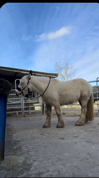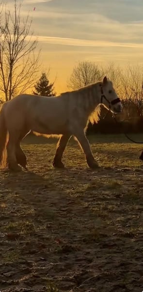 Tinkerstute, wird im April 5 Jahre Stockmaß aktuell ca. 140 cm mit holländischem Pass. Aus persönlichen Gründen sucht unsere Tinkerstute ein passendes neues Zuhause. • aktuell ca. 140 cm (noch im Wachstum) • kompakter Typ • kennt Offenstall und 24/7-Weidehaltung sowie nachts Box und tagsüber draußen • regelmäßig geimpft und entwurmt • Osteopath war im Januar erst da Sie kennt: • Longieren und Doppellonge (Roundpen & Platz) • Gelassenheitsarbeit • Spaziergänge im Gelände • Platzarbeit • Sie wurde bei der Vorbesitzerin in einem Kutsch-Ausbildungsstall ein- und zweispännig gefahren und kennt die Arbeit vor der Kutsche. Laut Vorbesitzerin wurde sie bereits im Abteilungsreitunterricht eingesetzt. Beim Hufschmied ist sie brav. Sie ist aufmerksam, intelligent und arbeitet fein mit, wenn sie klar geführt wird. Im Gelände zeigt sie sich grundsätzlich gut händelbar. Sie ist aktuell kein Anfänger- oder Kinderpferd. Obwohl sie von der Vorbesitzerin (laut ihrer Aussage) als Therapiepferd ausgebildet und eingesetzt wurde, sehe ich sie aktuell nicht in diesem Bereich. Sie ist sehr Menschenbezogen. In einzelnen Situationen im Handling benötigt sie einen ruhigen, erfahrenen Menschen mit klarer und konsequenter Führung. Hier arbeiten wir bereits regelmäßig mit unserem Trainer. Unser Trainer arbeitet regelmäßig mit ihr vom Boden aus zur weiteren Desensibilisierung und Muskelaufbau. Im Gelände ist er sie im Schritt auch bereits kurze Strecken ohne Sattel geritten, was sie sehr ruhig und gelassen mitmacht. Dabei war sie jeweils als einziges Pferd unterwegs. Auch neue Wege und unbekannte Strecken bereiten ihr dabei keine Probleme, sie bleibt aufmerksam und geht ruhig mit. Ein Probereiten ist aktuell aufgrund fehlenden Equipments nicht möglich. Spazierengehen, Longieren und Kennenlernen sind selbstverständlich möglich. Sie wird ausschließlich an erfahrene Menschen verkauft, die den Umgang mit einem jungen Pferd mit Ruhe und Geduld bevorzugen, da sie aufgrund ihres Alters noch weiter lernen muss. Anfragen bitte nur bei ernsthaftem Interesse, mit ein paar Infos über Pferdeerfahrung, zukünftige Haltung und Ihrem Namen. Alles andere wird nicht beantwortet.