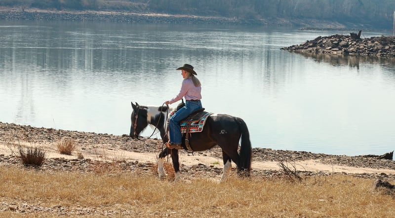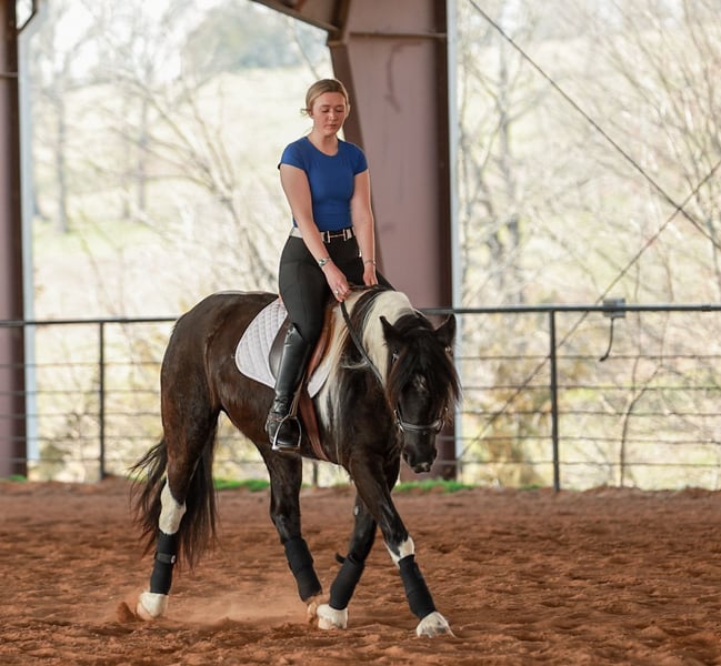 ⚜️𝓽𝓱𝓮 𝐆𝐎𝐋𝐃 𝓢𝓮𝓵𝓮𝓬𝓽⚜️ Happening now thru MONDAY | MARCH 23rd - Available EXCLUSIVELY on HorseBid's website! For more details and to register visit: www.Horsebid.com CONSIGNOR CONTACT: Lacey Wilf Equine 501-940-8704 LOCATION: Quitman, AR BREED: Gypsy Vanner Cross REGISTERED: No COLOR: Black and white HEIGHT: 14.3 hands AGE: 5 GENDER: Mare Bugatti is the kind of mare that earns her keep the moment you swing a leg over. This 5 year old Gypsy Vanner x Quarter Horse cross stands 14.3 hands and is dressed in a striking black and white coat that’s hard to miss. Beneath the eye-catching look is a mare that has already built a résumé many older horses would be proud of. Bugatti has been used extensively for real ranch work and shows up every day with a willing, get-it-done attitude. She’s the kind that understands a job and steps right into it. Doctoring sick calves, working gates, checking fences, trotting wheat pastures, or sorting pairs, Bugatti handles the day-to-day work of ranch life with confidence and grit. She works a rope well and is stout to the horn, giving you something solid to count on when the rope comes tight. Despite her size, she’s strong where it matters and stays steady in the moments when it counts. When the work is done, Bugatti is just as happy to slow things down and ease down the trail. She travels out willingly, crosses water, logs, and rough country with an open and curious mind, and takes new terrain in stride. She’s the type that enjoys having a job but also knows how to relax and simply cover ground. In the arena, Bugatti shows just how versatile she really is. She transitions seamlessly between Western and English, carrying herself comfortably in both. She’s well broke in the bridle and responsive through her ribcage, moving willingly off seat and leg cues with a soft, connected feel that makes her enjoyable to ride. Bugatti also has a fun side that makes her stand out even more. Give the rein a little wiggle and she’ll side pass over to a fence or mounting block to help you climb aboard. Tap her foot and shake the bridle rein and she’ll bow before laying down, and once she’s down she’ll work herself up into a sitting position with the posture of a polite young lady. It’s the kind of personality and trainability that makes her not only useful, but entertaining to have around. Around the barn, Bugatti keeps life simple. She’s easy to catch, groom, tack, load, and shoe, and she’s content whether she’s stalled or turned out with other horses. With her combination of ranch experience, versatility, and a little extra personality, Bugatti is the kind of mare that’s both practical and memorable all in the same breath. Watch her full Youtube video, feel free to reach out with any questions, and arrange a visit or a FaceTime with Bugatti!