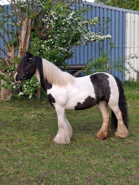 4-year-old Miniature Tinker mare is looking for a new carrot giver. The little Abbie is 1.26 meters tall and quite sturdy. For her age, she is already very well-adjusted and is familiar with children and all kinds of everyday and stable noises. During the day, she is in a mixed herd on pasture or paddock and at night in a loose box. Groundwork is a lot of fun for her. She is not yet fully responsive to aids, especially when it comes to cantering, but she will learn with more practice and balance. She does not buck or rear. She is already a great children's pony, and with further training under saddle, she will definitely become a reliable pony. No known health issues.