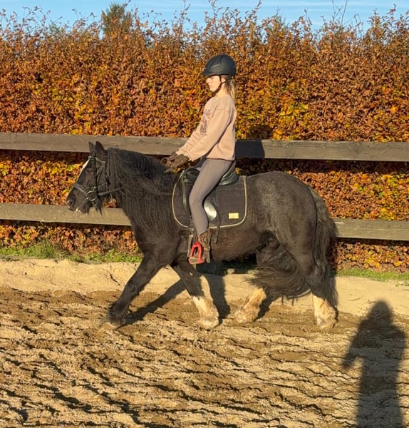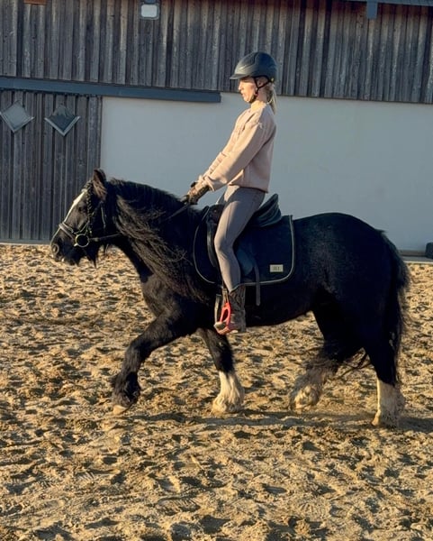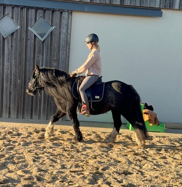 Zum Verkauf steht eine etwa 137cm große, 7 Jahre alte, kräftige Tinkerstute mit sehr gutem Gebäude und schöner Bewegung. Sie ist ein Traum im Umgang, super brav und einfach zu händeln. Kinder kennt und mag sie auch. Sie ist freizeitmäßig geritten und dabei brav und gelassen. Sie geht alle Gangarten auf dem Reitplatz und auch im Gelände. Dabei ist sie nicht schreckhaft und auch kein Rennpferd. Sie wäre bestimmt auch perfekt für eine Reitschule oder für eine Familie. Schmied und Verladen macht sie ebenfalls absolut brav mit. Sie kann robust gehalten werden und ist verträglich in der Herde. Der Behang wurde abgeschnitten, da die Stute übermäßig viel Behang hatte. Keine Mauke! Die Hufen wurden bereits frisch ausgeschnitten. Krankheiten oder Allergien sind nicht bekannt. Eine AKU darf gerne gemacht werden. Für das Probereiten, Vorreiten oder anderes Ausprobieren des Pferdes berechnen wir 35€. Beim Kauf wird dies gutgeschrieben. Gerne anrufen oder eine Nachricht senden 0157 36803742 Alle Angaben ohne Gewähr, Preisänderungen vorbehalten, Transport möglich, Onlinekauf möglich