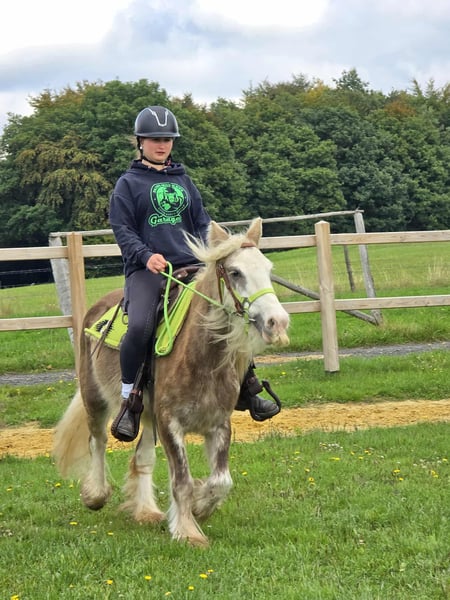 Tinker mare in a beautiful color Mare for leisure and trail riding* *Age*: 6 years, ridden *Height*: approx. 1.40 m *Equipment*: E-pass, microchip, and veterinary check available *Price*: €4,900 A beautiful mare that is ideally suited for trail and leisure riding. She is a versatile leisure horse, well-suited for both English and Western riding. She has a great, balanced temperament and feels comfortable in a herd, but is also well-adjusted in a stable. ### *What sets her apart:* - Used to open stable and herd living; box living is also no problem - Ideal for leisure and trail riders - Very balanced and uncomplicated to handle *Interested?* Feel free to call us at *0171-4001968* (daily from 8 AM to 8 PM). *Please no emails or WhatsApp, only calls!* *Additional Information:* - Accessories and transport can be organized at a low cost. - Our farm shop offers a small selection of used Western saddles. - *Installment payment is not possible.* *Customer Service:* - Every customer receives a contractually guaranteed *exchange right of three months.* - A trial ride with us is possible so you can get to know your dream horse. For €35, you can ride, have her ridden for you, go for a walk, or more. If desired, you can also test a second horse for €25. This amount will of course be deducted from the purchase price of a horse on the same day. *Special Features:* - If picked up immediately with a horse trailer, you will receive *a discount of €100.* - We conduct the sale with a transparent trial ride to ensure that it is the right horse for you. *Legal:* - We are the sole and unrestricted owners of the images; the image rights belong to us. *Unauthorized use of the images is prohibited.* - Please note that this is a living horse. Our information is based on the impressions of the caretaker and does not represent guaranteed characteristics. - Advertisements will be deleted immediately once the horses are sold. *Interested?* Feel free to call us at *0171-4001968* (daily from 8 AM to 8 PM). *Please no emails or WhatsApp, only calls!*