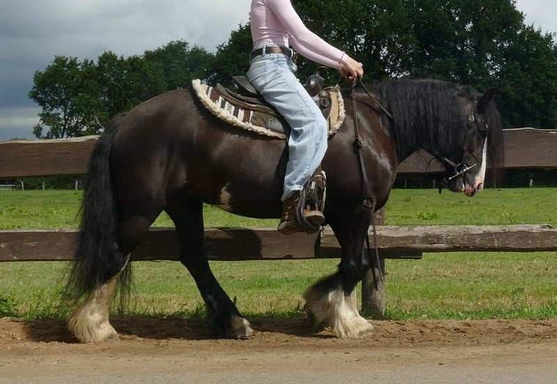 Evita is sweet and well-behaved in handling. She is curious and diligent. Evita goes out on trail rides in a group. For further questions, feel free to contact Heinrich Schulte-Übermühlen by phone at: 01725656719 or at: Christian Held 015222874323