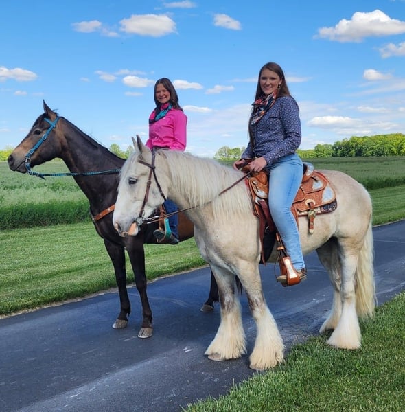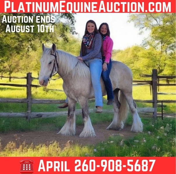 ONLINE AUCTION Place your bids at www.PlatinumEquineAuction.com Starting Bid $3500 Auction ends August 10th, 2025 Need a new saddle? Check out White Rock Saddles on our website or Facebook Chase Court Jester aka Court is a beautiful coming 3 year old, registered Gypsy Vanner Gelding that is standing 14.1h and is stout built. He is a barn favorite! This amazing little gelding has all the right moves for everyone in the whole family and is the perfect size. He has been extensively trail riddin and put through every test by a 15 year old girl. He has been nothing but an easy keeper since we recieved him as a young 2 year old with little training. Court has been ridin 7 days a week, morning till night, he’s not afraid of a hard days work! He is a been there-done that gelding at just the age of 3. He will go slow and steady no matter where you take him or he will pick his pace up with ease if needed. Court is always the first at the gate and the first to stick his head out of his stall to give you a warm greeting. He is definitly a trail master. Court will cross logs, go through bridges, water, up and down rough terrain, up and down the steepest hills, and is traffic safe. He bathes with ease, loads like a dream, clips easily, standa for the ferrier and will stand all day tied to absolutely anything. He is always confident no matter the situation you put him in. Court is use to the farm life! Dogs, cats, cows, goats, sheep, nothing bothers him! He will ride english and western, stay collected or move out. Court trail rides out alone or with a group of people. He will take the lead or follow. He has been on many, many trail rides with a large group of kids with many different types of horses and ponies, none in which have ever bothered him. Court has been an absolute blast to have around and is always a favorite for the young ladies! He is always happy, sound and ready to please. Court will do arena work all day and never sour out, or he will hit the trail for a 20 mile adventure and he always does it to his best. He rides bareback or double, either way suites him just fine. He is tarp broke and ball broke. Court has a great slow western trot, and has an amazing extended trot. He lopes right off with a nice slow lope or he will pick his speed up with ease. He has a very willing and kind demeanor which suites people of all ages! He is ready to go in any direction with any level of rider. Court is always reliable whether you ride him everyday or once a week he’s the same everytime! It should speak volume on just how calm this gelding is…he has been 85% broke out by a 15 year old girl! Come check out this handsome gelding and see for yourself! Located in Camden, MI. For more info contact April with Mid-West Performance Horses 260-908-5687. ONLINE AUCTION Place your bids at www.PlatinumEquineAuction.com Starting Bid $3500 Auction ends August 10th, 2025 Need a new saddle? Check out White Rock Saddles on our website or Facebook