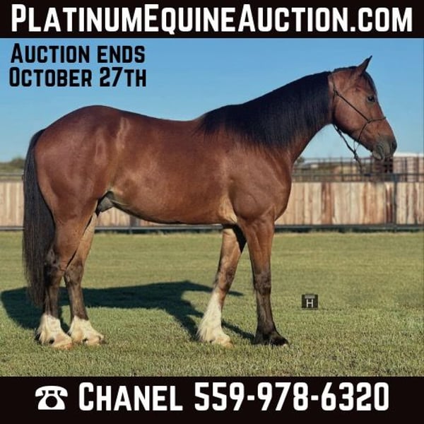 ONLINE AUCTION Place your bids at www.PlatinumEquineAuction.com Starting Bid $3500 Auction ends October 27th, 2024 Need a new saddle? Check out White Rock Saddles on our website or Facebook! Soldier is a Gypsy/QH gelding standing 14.3 hands tall, 3 years old. He drives as well as rides Western and English. Soldier is gentle, safe, and very broke for his age! He is extremely soft and responsive and naturally wants to collect up. He will lope off with a simple smooch. He is very friendly, loves attention and is full of personality. Soldier is not spooky and loves to go places. He is traffic safe, will drag anything you ask him to pull, loves the tarps and balls and anything you give him to play with! Soldier has been started over fences and absolutely loves it! He has been a natural since the first fence and we truly feel like he would be an outstanding hunter prospect. He is smooth, quiet and easy enough for a youth to finish out. Soldier has been ridden on the ranch and is a mountain goat over all the terrain. He enjoys the water as well. Soldier has never offered to buck or be silly. He is a gentleman to be around, saddle, bridle, haul, pasture etc. He will greet you at the gate. Soldier is athletic and has the potential to go any discipline someone wishes to take with him. He is sound and clean legged, UTD and ready to go! FMI call/text Holland Horse Company Chanel 559-978-6320. Shipping can help be arranged nationwide from Jacksboro, TX. ONLINE AUCTION Place your bids at www.PlatinumEquineAuction.com Starting Bid $3500 Auction ends October 27th, 2024 Need a new saddle? Check out White Rock Saddles on our website or Facebook!