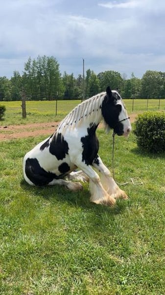 Are you looking for a young, athletic, big boned Gypsy Vanner with great structure and bone? If so, then Axel is your guy. He stands 14H tall and wide. He has all the potential in the world. He is so willing and eager to learn anything you throw his way. Axel has been ridden through just about every obstacle and atmosphere you could possibly imagine. From riding through bison, loading semis with cattle, rough trails, and even parades with all the loud music and floats, Axel takes it all with a grain of salt. Axel has been an “in your pocket” type horse since he was a weanling, wherever you’re at or whatever you’re doing, he wants to be right there with you. He is very low in the pecking order and would rather be right by your side than in the field playing with other horses. Axel is a very thick made gelding that has more whoa than go and would make an exceptional kid’s horse. He rides off your legs and seat so much that you can pull your bridle off and enjoy your day on his back with nothing on his head or neck. When it comes to loading and hauling Axel is a pro, no matter if you’re in a slant load trailer at a show or a stock trailer in the middle of the pasture, Axel will load himself into trailers amazingly. He is truly a stunning, young gelding with a heart full of kindness and a mindset the whole world should have. So, if you are looking for your next lifelong partner that loves attention, easy to be around, eager to please and just an all-around exceptional young gelding