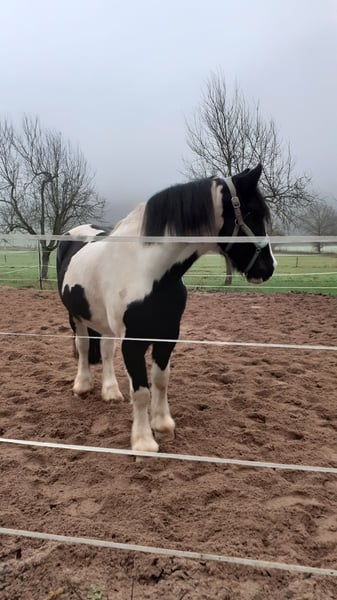 PLATZ VOR PREIS ! VERMITTLUNG IM AUFTRAG Cailan ist ein achtjähriger lieber, charmanter und sensibler Irish Sporthorse Cob-Wallach (1,56 m) der Spass und Interesse an der Arbeit hat und der "seinem" Menschen sein grosses Herz öffnet, wenn er das nötige Vertrauen erlangt hat. Cailan sucht neue verantwortungsvolle Besitzer mit Zeit, Geduld und dem nötigen Knowhow um gemeinsam zu wachsen. Er liebt Bodenarbeit, zeigt dabei sehr viel Interesse und reagiert auf feine Hilfen. Er freut sich über jede Aufmerksamkeit und genießt die Zeit und den Umgang mit seinen Menschen. • Jedoch ist Cailan kein Anfängerpferd! Cailan wird als roh abgegeben und braucht eine ruhige, verlässliche Führung die ihm Sicherheit gibt. Im Umgang ist er aufmerksam aber noch unsicher in neuen Situationen und benötigt deswegen durch "seinen" neuen Menschen Geduld und Feingefühl. • Eine konsequente Begleitung durch Bodenarbeit, ganzheitliche Übungen zur Festigung von Vertrauen und Bindung, Langfristig faire, klare Zusammenarbeit auf Basis von Respekt und Sicherheit, machen aus Cailan sicher einen verlässlichen Freizeitpartner. Leider fehlte bisher hierzu die nötige Zeit und auch Knowhow der Vorbesitzer. • Cailan hat ein kleines Handycap -näheres auf Anfrage! , hat gute Hufe, ist schmiede und verladefromm, verträgt 24/7-Weide, kennt auch Offenstallhaltung und Paddockbox. Cailan sucht ein : • 5*-Zuhause auch als Beisteller mit regelmäßiger Beschäftigung, Fairness und sanfter Führung. ! PLATZ VOR PREIS !