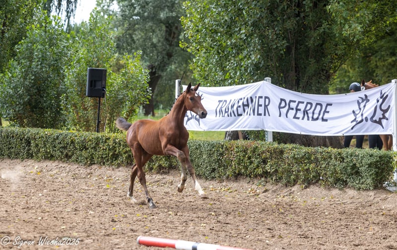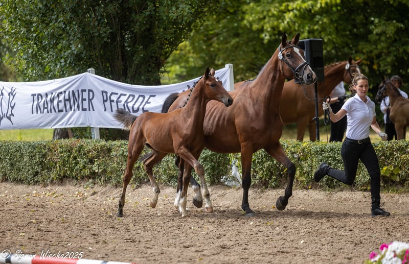 Hochprämierte Väter und Mütter sind im Pedigree vereint, die sowohl sportlich, als auch züchterisch Einfluss auf die Trakehner Zucht genommen haben. Der typvolle, braune Hengst präsentiert sich von Anfang an in einer sportlich-muskulösen Aufmachung. Der Hengst ist großrahmig mit einem korrekten und soliden Fundament. Seine Bewegungsabläufe sind taktvoll. Die Galoppade ist raumgreifend und gut untergesprungen, bei energischem Abdruck. Der Trab ist schwungvoll bei guter Mechanik. Sein Schritt ist raumgreifend und frei aus der Schulter heraus. Sein Vater STATEMENT entstammt mütterlicherseits aus der einem der erfolgreichsten Familienzweige der Trakehner Population mit vielen sporterfolgreichen Nachkommen in den schweren Klassen und in der Zucht. Die Mutter KAMIA entstammt der erfolgreichen Familie T7A1 der Kassandra vom Gestüt Webelsgrund, aus der ebenfalls eine Vielzahlerfolgreicher Nachkommen in Sport und Zucht entstammen. Aus der direkten Familie der Mutter KAMIA kommt die Trakehner Bundessiegerstute 2004 KATE v. Friedensfürst, die Elitestute KAJA V und der Trakehner Bundessieger der 3-jährigen Stuten und Wallache KEANU. Die Familie der KASSIOPEIA III zeichnet sich durch ihre menschenbezogene, freundliche Zugewandtheit und einwandfreien Charakteren aus, die gleichzeitig einen hohen Arbeits- und Leistungswillen haben.