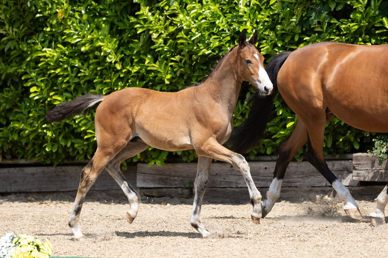 Sportiness at the highest level with international aspirations cannot be documented more emphatically than through this son of the world champion Grafenstolz TSF and grandson of the FEI Grand Prix winner Polarion TSF and the multiple course winner Hirtentanz. His son, born in March of this year, is thus a brother to Olympians and winners in the most challenging eventing championships in the world, such as Lexington, Burghley, Pau, or Badminton. Accordingly, this young talent from the best lineage presents himself as wiry, athletically impressive, and energetically focused on the tasks at hand. The mother has completed one of the best performance tests ever, naturally with dream scores for her jumping. She is connected to one of the few daughters of the elite stallion Parforce, who has personally proven his athletic performance in the course as well as that of his offspring. Additionally, with the third dam Holey Pasadena, we have a heroine in the S-level courses. She represents one of the best performance lines in the population; one of its most famous ambassadors is the great Habicht, who stands out as a representative focus.
