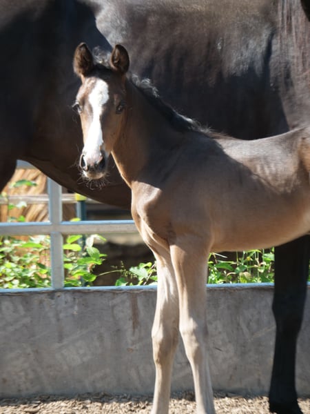 Een hengstveulen van Prince Patmos uit Räuberkunst van Lossow met veel uitstraling. Topatleet met een uitmuntend, modern zijprofiel en lichtvoetig gangwerk, altijd bergop, levendig en op tijd. Premium veulen, beoordeeld met 58 punten. Deze hengst in spe is dus een kandidaat voor iemand die op zoek is naar een sportman.