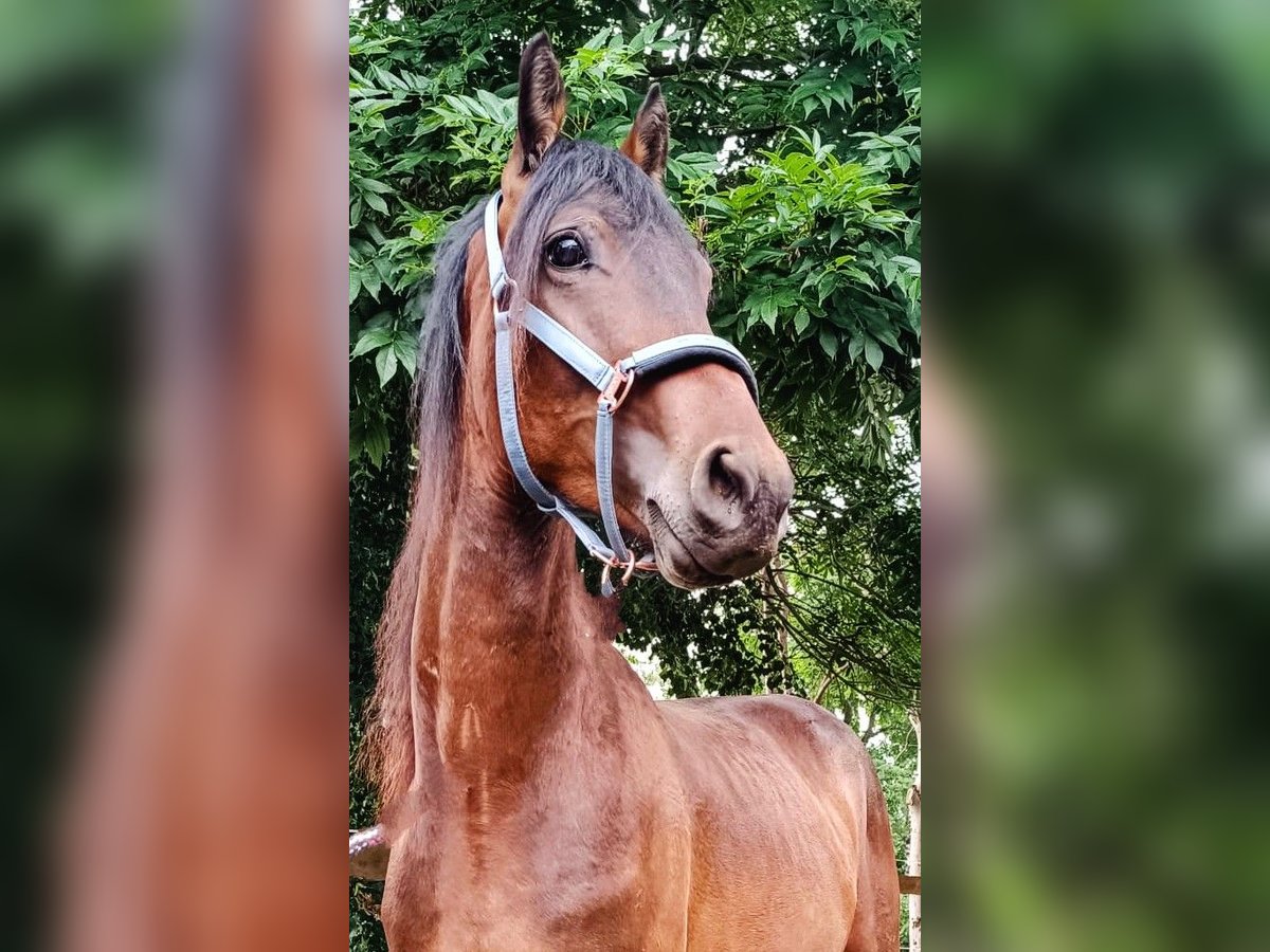 This stunning young stallion is looking for his forever home. He was born on June 25, 2023, and is currently approximately 1.55 meters tall. He has incredibly long legs and already boasts a thick mane and tail. A show-off with style and endless charm, he knows how to make a statement to attract all eyes. With his big eyes and sweet expression, he captivates everyone he meets. He is expected to reach a final height of around 1.65 meters and has great potential for more demanding tasks. Already exhibiting impressive movement, a lively and floating trot, and a calm, uphill canter, he impresses at this early stage. A very confident young gentleman with a strong presence. He is already lunged at the halter, walks over a tarp, and enjoys jumping over a cavaletti. He is well-versed in basic foal training, regularly dewormed and vaccinated, and very social with other horses. This young stallion shows hardly any typical stallion behavior, is well-mannered, and knows how to behave. Experience in handling stallions or young horses should be sufficient. With the right partner by his side, a career in sport could certainly be possible. The parent horses can be viewed on site. He comes with a passport and pedigree documentation. We have a few videos, but they hardly do justice to his excellent gaits. Visiting and falling in love with him is the motto. A viewing appointment can be arranged, with a €15 fee for the introduction in the paddock, which will be deducted from the purchase price. We also have horses with various training levels available at the farm. If you're interested, please get in touch.