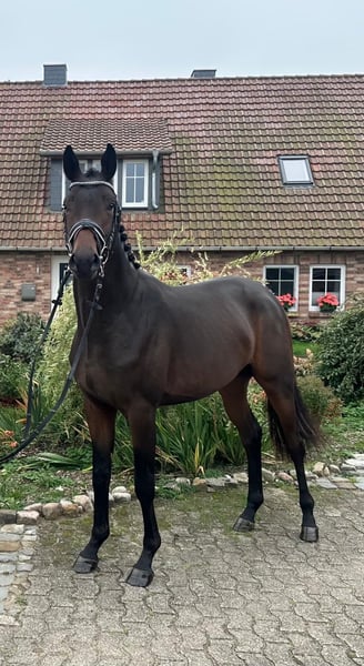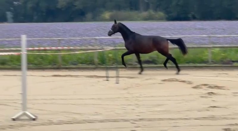 Ostertanz weiß die Blicke auf sich zu ziehen. Ein hervorragender, losgelassener und durch den Köper fließender Schritt, ein aktives Hinterbein und das gute Fundament zeichneten ihn bereits als Fohlen aus. So wurde er mit Bestnoten ausgezeichnet, war das am höchsten bewertete Fohlen der Musterungsreise 2023, wurde Reservesieger des Fohlenchampionats in Tarmstedt und trägt zudem den Titel Championatsfohlen im Pass. Nun ist er 2 Jahre alt, leicht antrainiert und bereit für neue Aufgaben. Sein feiner, trockener Kopf schreibt ihm den Trakehner förmlich auf die Stirn und seine Herkunft muss er definitiv nicht verstecken. Vater und Pr. Hengst TSF Gaspard von His Moment x E.H. Imperio überzeugt neben Schwung, Schulterfreiheit, und toller Mechanik in der Bewegung mit Attributen wie Rittigkeit, Leichtfüßigkeit und Charme, die er deutlich an seine Sprösslinge weitergibt. In den letzten Jahren hat er sich kontinuierlich als Dressurhengst in die Weltelite vorgearbeitet und überzeugt mit Spitzenvorstellungen und der Teilnahme an der Weltmeisterschaft der jungen Pferde. (https://trakehnerzucht-derlin.com/gaspard/) Seine großrahmige Mutter Only You (All Inclusive - Marduc) steht ebenfalls voll im Trakehner Typ, war Auktionsstute in Neumünster und entspringt im Ursprung dem Stamm der O69A Oka – zu Dohna-Schlobitten. Ostertanz wird ein Hingucker mit Ausdruck und Bewegungsqualität für das große Viereck. Ein Diamant zum selber Ausbilden, der bereits alles Grundlegende (altersentsprechend) kann: Schmied, halftern, führen, trensen, longieren, Longiergurt, satteln, verladen, Anhänger fahren, Freispringen…. Kommen Sie gern vorbei und machen Sie sich selbst ein Bild! Videomaterial auf Anfrage auch im Umgang!