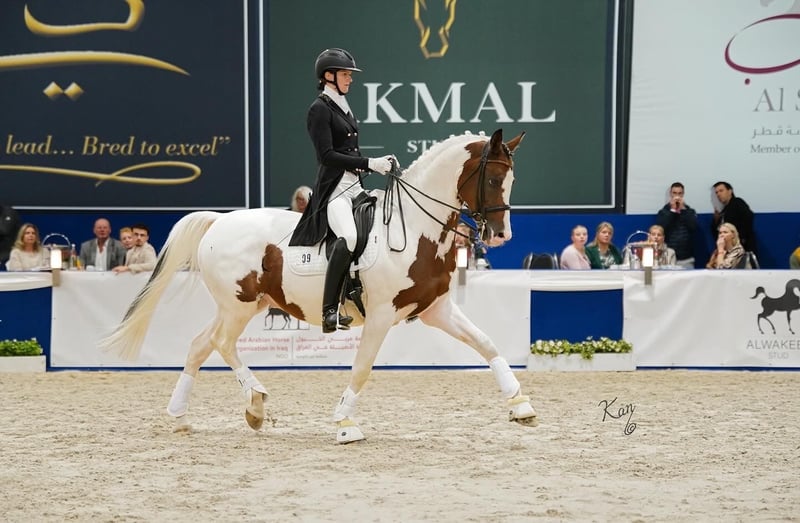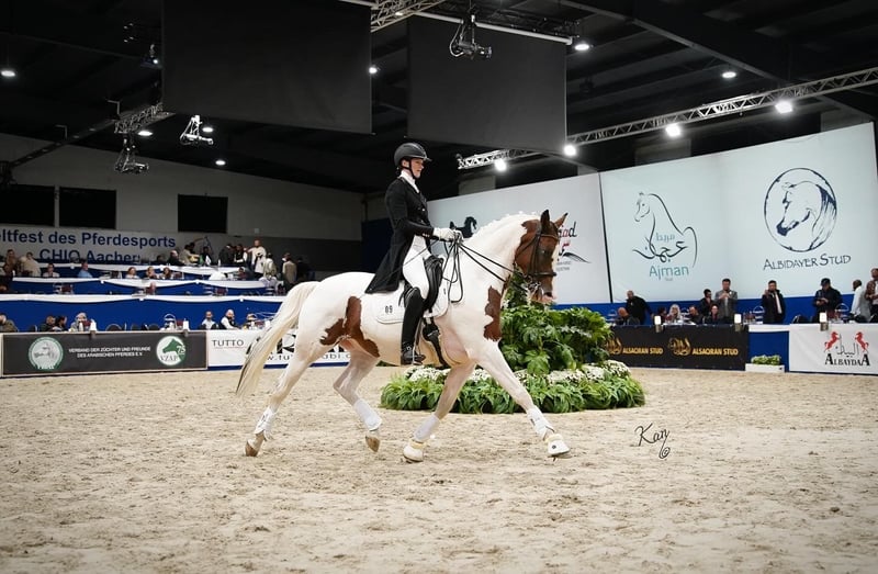 En 2013, le Gabon a été le premier métis arabe à obtenir une licence dans le NMS pour l’élevage Trakehner. Dans le VZAP, il est devenu étalon premium et champion de réserve et y détient maintenant le titre d’étalon d’élite. Il descend de la célèbre Camaro piebald et de la jument d’élite arabe Galina Ox, une multiple championne de performance entièrement russe testée des meilleures lignées de performance russes. Entre-temps, il a été placé en dressage dans la classe S, et s’est imposé à plusieurs reprises dans la classe M**. Le Gabon hérite certainement de son beau type, d’une bonne base et de son tempérament agréable. Sa progéniture est clairement polyvalente, saute très bien et aime sauter et est extrêmement facile à monter. Le Gabon compte désormais 3 fils agréés, dont 2 étalons premium avec des performances d’étalon, son plus jeune fils agréé Camar Varys et Camar Vaticana AA a remporté le test de performance des étalons 2022 à Stadl Paura avec la meilleure note de 8,41 et est actuellement classé GPf A, A-dressage et saut d’obstacles. Il a également des filles primées ainsi que divers poulains premium, gagnants et vendus aux enchères. Nous vendons encore quelques doses de TG, ce qui n’est pas petit, à 600 € la dose (5 paillettes). Cela fonctionne très bien, nous avons aussi sa progéniture chaque année. Le TG n’est vendu que contre paiement anticipé. Vous êtes les bienvenus pour visiter le Gabon et certains de ses descendants avec nous, veuillez prendre rendez-vous. Photos : Knaack-Lindemann, Zoomperformance, Sirid Hahn, Jan Kan