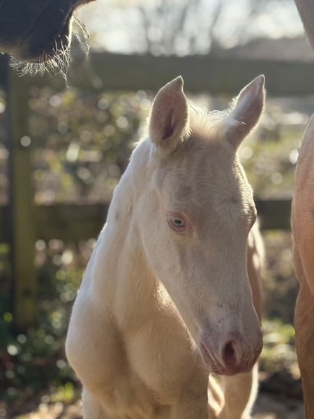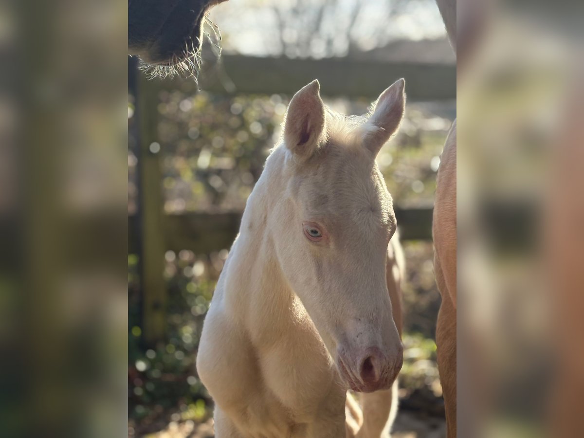 Hier bietet sich eine äußerst seltene Gelegenheit ein Farbjuwel für die Warmblutzucht zu erwerben. Dieser Cremello Sprössling bekommt volles Trakehnerpapier und bietet sich für die Veredlung an, da Mutter eine Araberstute ist und der Vater ein Englischer Vollblüter ist. Seine Mutter hat die Stutenleistungsprüfung über Distanzritte bis 80km abgelegt, sein Vater wird im Springsport vorgestellt. Auf den Bildern ist er 3 Tage alt, neue Bilder folgen regelmäßig.