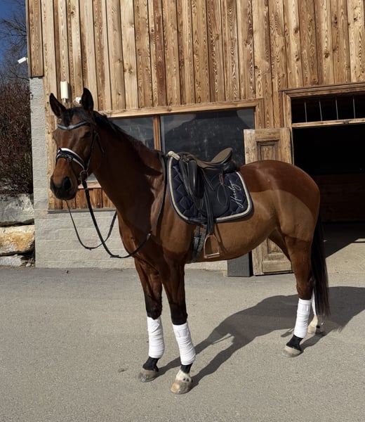 I am selling my 9-year-old Trakehner mare. She is very eager to perform, has extensive competition experience, and is highly talented over fences. Unfortunately, due to time constraints, I need to part with my trusted partner. She is reliable both in training, at competitions, and during hacking. I have competed her up to level A in eventing, with nearly every start resulting in a placing or victory. Thanks to her bloodlines, she is suitable for international competitions as well as show jumping events. However, she is not an ideal horse for beginners. Her dam, Oh Lala, competed internationally in eventing, and her sire, Desirao xx, is well known for passing on jumping talent and excellent jumping technique. Optima would also be of interest for breeding. She is the winner of the Trakehner mare licensing for show jumping and half-bred horses. Additionally, she is a premium mare of the Trakehner Verband.