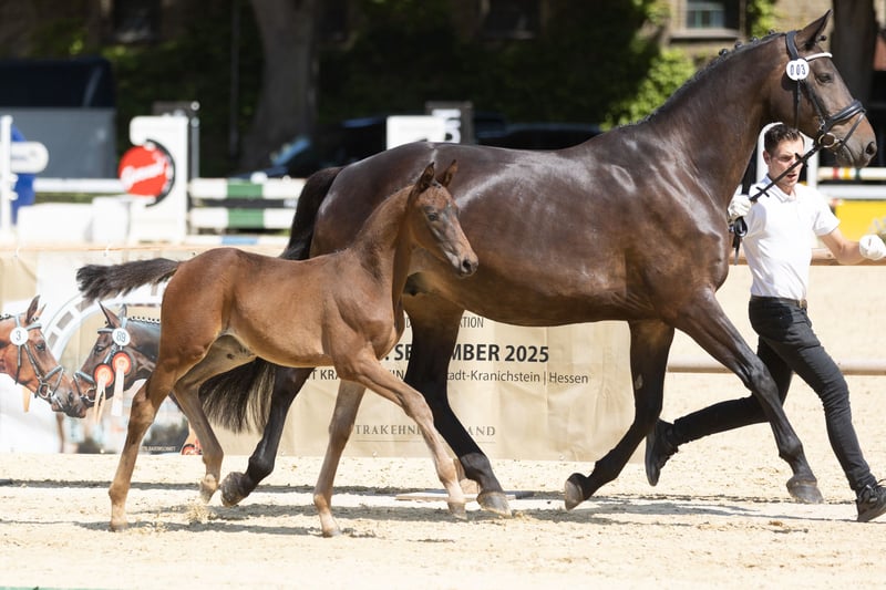 Trakehner Prämienstute 11 jährige Stute von Millenium ! V: Millenium MV:King Arthur 2025 ein sehr schönes prämiertes Stutfohlen gehabt . Für 5.2026 tragend ! Daher Abgabe nur bis Ende Januar ! Reitbar , aber muss wieder trainiert werden ! Ausbildung 4 jährig bis Klasse L mit Turniererfolgen ! Sehr lieb ! Schmiedefromm , problemlos beim Verladen ! Alles weitere im persönlichen Kontakt ! Standort NRW