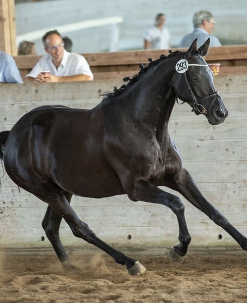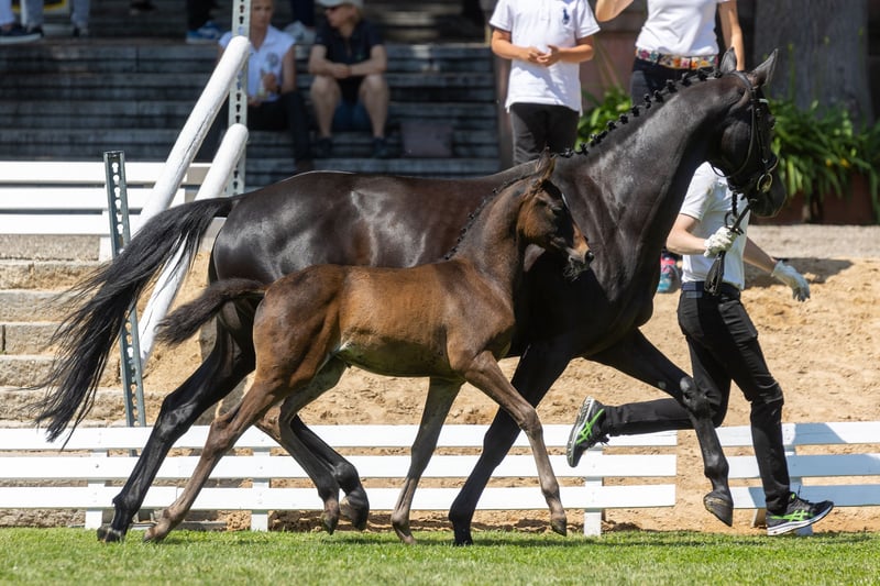 Fliederelfe is a highly noble, breeding-tested Trakehner mare from one of the most valuable mare lines in modern Trakehner breeding. She embodies an elegant, performance-oriented Trakehner mare full of nobility, charisma, and a highly interesting pedigree. Having emerged as a champion foal herself, she has gifted us two premium foals, and we would like to pass her on to a breeder who wishes to utilize her bloodlines: Coming from a true performance line, her maternal lineage is characterized by elegance, willingness to perform, movement ability, and nobility. Her two offspring are with us, being raised, backed, and trained here. We wish for her to have a place as a valued breeding mare, as we do not breed every year and therefore cannot contribute to Trakehner breeding as it should be. She is an extremely kind and well-mannered mare, very gentle in handling and very sweet in the herd. She has been ridden in dressage, show jumping, and eventing - trained by Lea Sigl. We have then taken her on for breeding, but we would like to see her in more professional breeder hands. She moves with natural balance and ease and is what one would call a "head-turner."