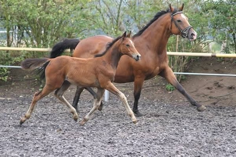 Siamo oggi in grado, dopo anni di faticoso lavoro per costruire la famiglia di fattrici Trakehner della Libelle v. Famulus, di offrire due fattrici di questa linea: ecco la figlia baia scura dell'half-bred Starway v. Star Regent, un tempo cavallo da completo di successo sotto Ingrid Klimke. Lavitana è nata nel 2014 da Lavinia v. Karo As (da Vollkorn xx), la fattrice è cresciuta in modo robusto in un gruppo al pascolo tutto l'anno, è stata montata nel 2018 e ha superato il test di prestazione nel 2019. A causa della rara e preziosa linea di sangue prestazionale, ci piacerebbe cedere la fattrice a mani di allevatori a un prezzo vantaggioso. Per ulteriori informazioni sulla genealogia e altre informazioni, non esitate a contattarci telefonicamente (0172-2017333).