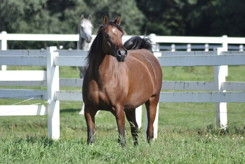 Nur wegen Aufgabe der reinen Vollblutaraberzucht geben wir diese letzte Zuchtstute in wertschätzende Hände ab. Im VZAP hoch bewertet und prämiert, noch nicht im Trakehnerverband eingetragen. Eine Tochter des Multichampions Bolero EM und der Elite- und Trakeher GP-Stute Qair un Nissa v. Weltchampion Kubinec. Bestes überwiegend russisch/spanisches Blut. Qapuera ist extrem typvoll, ganggewaltig bei bestem Körper und gutem Fundament. Sie hatte drei prämierte Stutfohlen. Eine ihrer Töchter- Camar Cadiz v. Pechaton ox - stellte in diesem Jahr vom Trakehner Painters Maxim ein hoch bewertetes Championatsfohlen, welches beim Championat in Graditz den Ring der Spezialblutfohlen gewinnen konnte. Qapuera führte in diesem Jahr ein prämiertes, wunderschönes Stutfohlen vom Elitehengst Arian Shah ox bei Fuss, dieser ist auch im Trakehnerverband gekört und Vater u.A. des gekörten Bahrain. Nicht gedeckt für 2026 Qapuera ist artig im Umgang, manchmal etwas nervig und kann bei Stress etwas weben. Kein Beissen, treten etc. Sie kennt im Sommer 24/7 Weidegang sowie Box/Paddock im Winter. Sie ist nicht dominant in der Herde. Keine Stalluntugenden. Kennt Besamen, Ultraschall etc. Nicht geeignet für die Unruhe eines großen Reitstalles. Wir würden uns freuen, wenn jemand diese wunderschöne Seite in sein Zuchtprogramm aufnimmt.