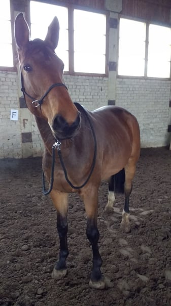 Redis is born 2009. She has competed with me up to 110 cm. I simply ran out of courage and skill to go higher, but she certainly has the scope to clear at least 120 cm. She is easy for anyone to handle on the ground. Under saddle, she doesn't get hot, moves well, and has her own engine. She loads into the trailer without problems and travels well both alone and with company. She hacks out safely, isn't afraid of anything, and doesn't buck. She has big, loose movement and absolutely loves cross-country, making her particularly ideal for eventing. Her eyes light up at any kind of jumping. She has had one foal, and the pregnancy went without issues (she is suitable as a broodmare). Since then, she has simply been teaching amateurs and hobby riders. In short, she is a horse in tip-top condition in every way, currently in training, and ready to go jump a 1.00m course tomorrow (for higher levels, you might want to get used to each other a bit first!). An ideal schoolmaster.