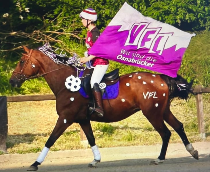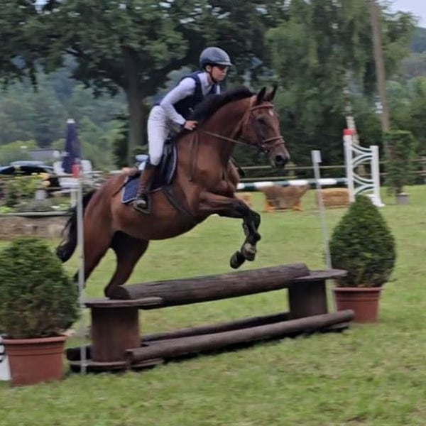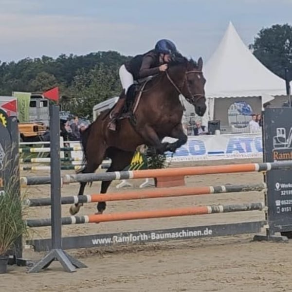 Ich verkaufe meine liebevolle 18 jährige Stute! Sie ist bis L springen platziert und A siegreich und ebenfalls in der Vielseitigkeit (Geländespringreiter) platziert!Sie hat Go zum Sprung,weshalb sie nicht für reine Anfänger geeignet ist! Sicher im e und a Bereich sollte man schon sein Sie liebt Wasser und geht alleine als auch mit der Gruppe ins Gelände! Hat man sie erst einmal auf seiner Seite kämpft sie für einen mit!! Sie ist regelmäßig geimpft und bei ihr wurden gerade frisch die Zähne gemacht! Sie ist artig beim Schmied und geht ohne Probleme auf den Anhänger! Sie hat in der Corona Zeit ein Fohlen bekommen!(2022) Das Fohlen bzw. jetzt 4 jährige ist ebenfalls zu verkaufen Verkaufe sie allerdings nicht als Zuchtstute,da sie kaum bis gar keine Milch hatte und wir das Fohlen per Hand aufziehen mussten! Die Geburt lief ansonsten reibungslos ab Ich könnte mir sie auch als reitbares Beistellpferd vorstellen Ein aktueller TÜV liegt nicht vor! Allerdings war der letzte TÜV nicht allzu gut,weshalb sie weit unter Wert zu verkaufen ist!! Aktuell nicht ganz im Training wegen Winterpause Sie war noch nie lahm bei mir!
