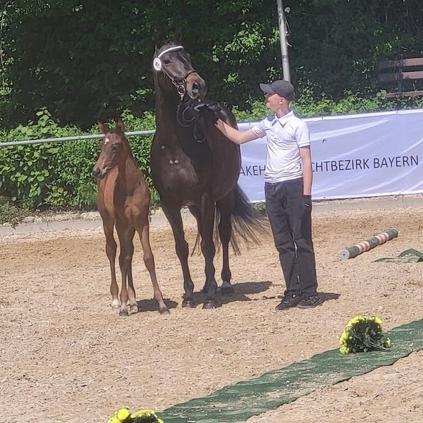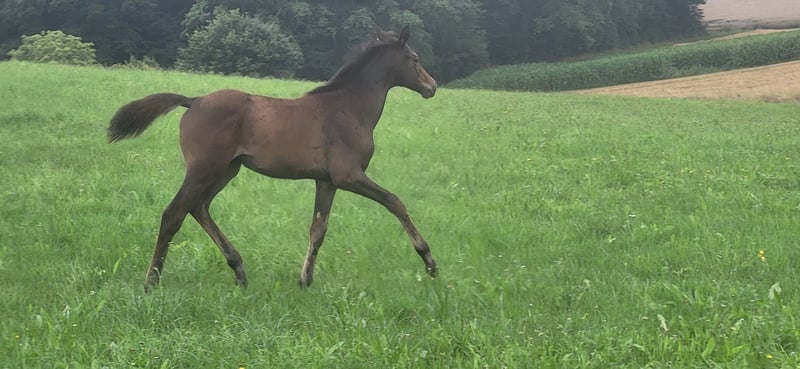 **Sales Advertisement: Trakehner Mare** Father Thoroughbred xx, Mother Halfbred Mare!!! Agile, curious, confident, no distance too far – this is how one could describe the foal. On rides, always overtaking mom and joyfully galloping with power. Or it lets mom get far ahead to then dash past her; a pleasure to watch! Certainly a foal that will make a powerful eventing or hunting horse, more suited for the more experienced rider. Willingness to perform radiates from every movement! The mother mare had a son in the licensing lot in Neumünster. You are welcome to watch the foal from horseback or from the accompanying vehicle during a ride, or also in the arena in free movement. I can send videos of rides via WhatsApp. Please feel free to contact me if you are looking for something in this direction; the "Saved Button" will not get you any further.