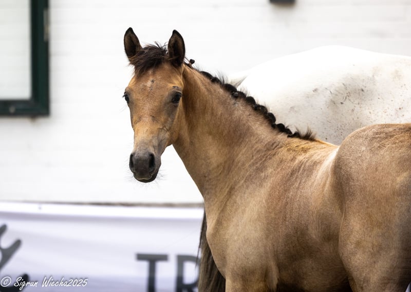This filly, imbued with unmistakable charm and a unique nobility, combines the proven bloodlines of her sire Bahrain of Ludwigsburg, which includes the renowned Bazar, with one of the most distinguished Trakehner mare lines. Her granddam, Herbstkönigin, is a full sister to the approved sire Herbstkönig and also to the licensed and successful M-level show jumper Herbstklang (by Kasimir). This striking filly qualified for the Schleswig-Holstein Foal Championship and performed excellently in the bloodlines-focused class. A harmonious blend of Arabian genetics, typicity, and an appealing movement pattern characterized by secure, steady, and uphill gaits.