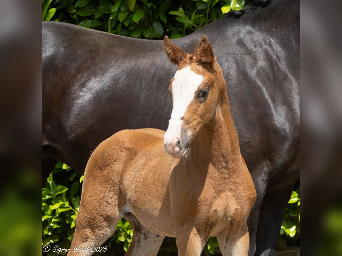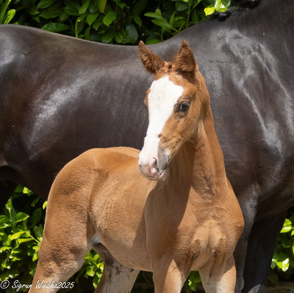 Father Rockingham not only showcases a convincing debut as a sire but also impressed at every start in age-appropriate competition tests - a record crowned by the title of the reigning "Trakehner Dressage Champion" and qualification for the Bundeschampionat of the German Dressage Horse. His daughter appears like a true princess, attractively marked, noble, and feminine, with particularly harmonious body parts. She moves off the spot diligently and energetically, makes herself big while doing so, never loses her rhythm, and captivates with both relaxation and impulsion. The highly awarded mother is one of the few daughters of the S-dressage successful Hancock and represents a top lineage from which numerous breeding and sport elites have emerged in close relation. Breeding and sport are exemplarily combined here. Inquiries are welcome via email at: couralou@t-online.de.