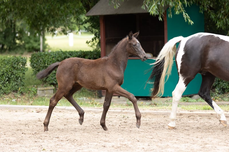Noble and typologically striking, this daughter of the sportily age-appropriate brilliant Zauberdesign enters the scene, always aware of her charisma and attractiveness, thus serving as an ambassador for her renowned father from a young age with the right design. In her movements, she impresses with a lot of power expression in great dynamics, demonstrating exemplary looseness, rhythm, and an impressive pose. From a breeding perspective, she is of high interest, as her sister and close relatives belong to auction elites and represent a top-class lineage with rarely represented, exciting genetics from traditional Anglo-Arabian roots. Especially noteworthy is the combination of Grand Prix and S-level dressage champions Schwarzgold-Imperio, Monteverdi, Insterburg-Hohenstein, and Axis in the first three generations! This is outstanding!
