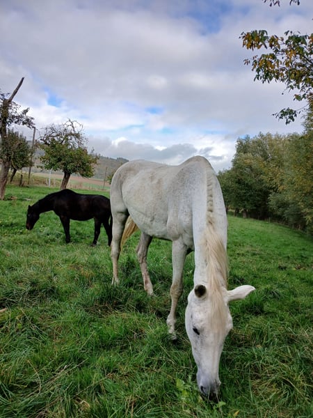 Con profundo pesar, debo cederla porque estoy en formación y no puedo dedicarle el tiempo necesario para acompañarla con cariño. Zisou sufre de tensión en la silla, ya que anteriormente tuvo malas experiencias. Sin embargo, este problema puede resolverse con mucha paciencia. Zisou es mucho más que un caballo; es un sueño, un alma llena de valentía y ternura a la vez. Con sus grandes ojos confiados, te mira como si quisiera decir: "Ven, dame una oportunidad." La relación amorosa entre humanos y caballos debe ser armoniosa y respetuosa. Zisou tiene eczema estival, pero su herida sana con cuidados constantes y mucha paciencia. Este desafío la ha fortalecido. Necesita un cuidado cariñoso, alguien que no solo gane su confianza, sino que también la valore y la conserve. Imagina que la comunicación funciona sin presión, con amistad en lugar de dominancia. Zisou percibe cada emoción y responde con respeto cuando le muestras sinceridad y corazón. Busca un dueño que la vea: un ser con alma y sentimientos. Anhela a alguien que entienda su pasado y la acompañe en su camino. Alguien que le muestre suavemente: "Estás segura, eres valiosa, eres bienvenida." Si estás listo para un caballo sensible, inteligente y de gran corazón, Zisou quizás sea exactamente lo que has estado buscando. Hablemos y conócela.