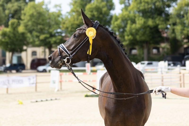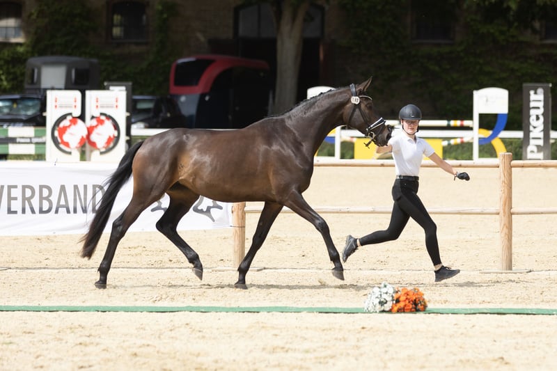 Cleopatra ist eine ganz besondere Stutenpersönlichkeit: Vornehm, bildschön, vorbildlich feminin besticht sie in ihrer Körperharmonie, in betont großem und wohlpointiertem Rahmen und weist auch hinsichtlich ihrer ausgewogenen Bewegungen, immer im Takt und in eindrucksvoller Geschmeidigkeit auf ihre vielsprechende Zukunft als qualitätvolles Reitpferd hin - dazu charakterlich eine Perle!. Hohe natürliche Rittigkeit ist in ihrer Blutführung verankert: Als eine wenigen Töchter des im klassischen Typ stehenden Prämienhengstes Kronberg, der aktuell in den USA einer erfolgreichen Karriere im anspruchsvollen Vielseitigkeitssport zustrebt bringt sie das Erbe des Dressurvererbers Schwarzgold und des Rittigkeitsgaranten und S-Dressurhelden Latimer mit. Auch Mutters Seite ist über den Hörsteiner Hauptvererber und Vater von Grand Prix Pferden, Cadeau sowie den auf der internationalen Grand Prix Bühne hocherfolgreichen Münchhausen TSF hochkarätige Dressurqualität verankert. Cleopatra kommt aus einem sehr selten gewordenen, leistungsbetonten Vollblutstamm und ist auch von daher hochinteressant für einen züchterischen Einsatz.