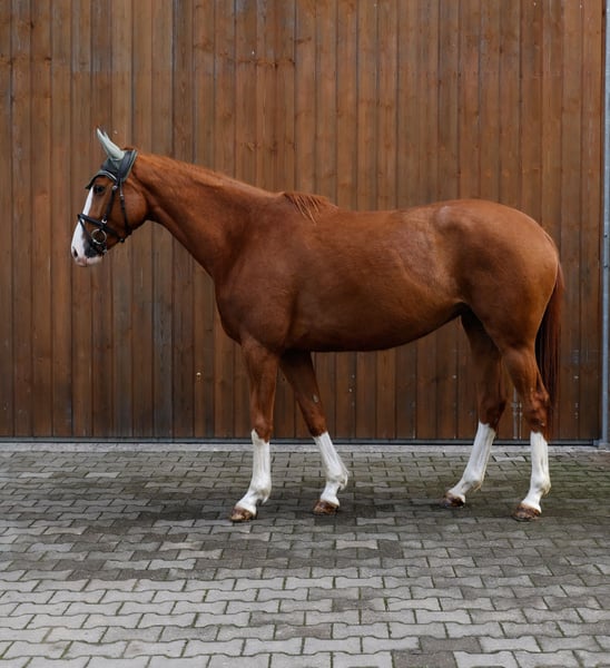 The bloodlines, strong character, and intelligence of this 4-year-old mare Enni make her a versatile and promising prospect. She has been being gently and appropriately trained since December 2025 and demonstrates a very eager-to-learn and attentive attitude. Under saddle, Enni has already completed her first jumps and shows great talent, ability, and a very positive attitude towards jumping. She has also been introduced to cross-country terrain. Her canter, in particular, promises a lot for the future – she will develop into a real meter-eater later on. Enni is a clever mare with a strong personality, yet she is very eager to learn and affectionate in her interactions. She is thoughtful and wants to please her handler. She also impressed at the Marbach show jumping competition, receiving a 8.0 for her jumping style. In daily handling, Enni is straightforward and agreeable: • easy to manage • knows how to load • behaves well at the blacksmith Since Enni is still young and in training, she is not suitable for beginners. We see her best with an amateur rider with experience in young horses who enjoys further developing a talented horse. We wish her a loving home where she will be appreciated not only as a sporthorse but also as a family member. To prevent riding tourism, we charge a fee of €50 for a trial ride, which will be deducted from the purchase price if she is bought. Serious inquiries are welcome, and we look forward to hearing from you.
