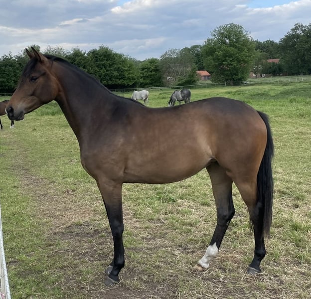 Conosci già questi tre stalloni di grande fama? Ecco l'opportunità di acquistare una puledra di 3 anni, di tipo classico, di altezza media, con ottima elasticità e qualità di movimento, allevata con cura. Puledra premio! È molto socievole con le persone e coraggiosa nella vita quotidiana. Regolarmente visitata dal ferratore: controllo / vaccinazioni, pronta per il secondo capitolo della sua vita come cavallo da dressage, salto o riproduzione. Vuoi conoscerla senza stress da asta, direttamente dal allevatore? Contattaci pure, siamo felici di accogliere appassionati di Trakehner.