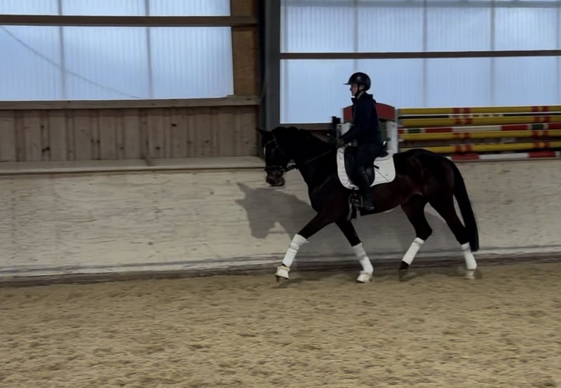 Dunkelbraune 5j. Trakehner Stute – fein & rittig Zum Verkauf steht eine elegante, langbeinige 5-jährige Trakehner Stute in edlem Dunkelbraun mit viel Typ und Ausstrahlung. Sie ist im Stutbuch I eingetragen und absolvierte ihre Stutenleistungsprüfung mit einer Endnote von 8,0 – damit ist sie sowohl sportlich als auch züchterisch eine interessante Option. Unter dem Sattel präsentiert sie sich zuverlässig, rittig und angenehm in der Anlehnung. Sie ist fein an den Hilfen, vermittelt ein gutes Reitgefühl und arbeitet motiviert mit. Ihre klare Einstellung und ihre Leistungsbereitschaft machen sie zu einem vielseitig einsetzbaren Partner – sowohl für ambitionierte Freizeitreiter als auch für Reiter mit sportlichen Zielen. Im täglichen Umgang zeigt sie sich freundlich, ausgeglichen und unkompliziert. Ein hübscher, moderner Allrounder mit Perspektive und Qualität. ⸻ WICHTIG: Die Stute läuft aktuell barhuf. Mit Hufeisen vorne könnte sie sich aus der Vorhand vermutlich noch etwas ausdrucksvoller präsentieren. Sie verfügt über sehr gute Hufe und kommt barhuf hervorragend zurecht. ⸻ 📍 Standort: Rosenheim 📞 Kontakt gerne telefonisch oder per WhatsApp 📧 Auch per E-Mail erreichbar ❗ Bitte keine Anfragen über den Messenger