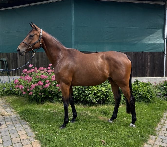 Highly interesting 4-year-old half-bred mare with a current height of 1.69 m by Duke of Hearts xx out of the Pr. mare Buena Vista by Guardian and the Pr. + St.Pr. mare Beate by Kostolany out of the elite mare Brightness xx. She was a highly rated foal and is now for sale as a breeding prospect and future eventing horse. Her full brother Buon Giorno, a stallion candidate for the 2024 stallion market, has been sold as a show jumping horse to China. From the family of Brightness xx also comes the licensed stallion Bertone, placed in eventing M (Preis der Besten) and show jumping S. The granddam Pr. + St.Pr. Beate by Kostolany was the highest-rated half-bred mare of her year. From this family come several eventing horses and very good broodmares. If you are interested, please feel free to get in touch.