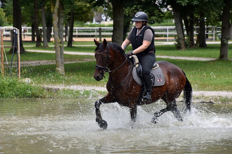 Zum Verkauf steht eine wunderschöne, braune Trakehner Stute, geboren im Jahr 2020. Im mittleren Rahmen stehend, deckt sie mit ihren 164 cm auch größere Reiter problemlos ab. "Orea de Cyr" wurde schonend angeritten und dann vielseitig ausgebildet. Sie kennt erste Geländehindernisse, sowie die Arbeit im Dressurviereck und die ersten Sprünge unterm Reiter. Diese talentierte Stute eignet sich hervorragend für die Vielseitigkeit und zeigt großes Potenzial in diesem Bereich. Im Umgang ist sie unkompliziert, vorbildlich beim Verladen und frei von Unarten. Koppelgang in kleinen Gruppen gewöhnt. Ebenso wurde sie heuer ins Stutbuch 1 des Trakehnerverbandes aufgenommen. Sie überzeugte mit 3 soliden Grundgangarten und mit viel Übersicht beim Freispringen. Besonders ihr rassetypischer Ausdruck macht sie somit auch für die Zucht interessant. Ganz aktuell besitzt die Stute eine große AKU, die sie ohne jeglichen Einschränkungen ausweist. Wir wünschen uns für diese Stute fördernde Hände, sei es im Vielseitigkeitsport oder als verlässlicher Freizeitpartner. Bei Interesse oder weiteren Fragen freue ich mich über Ihre Nachricht!